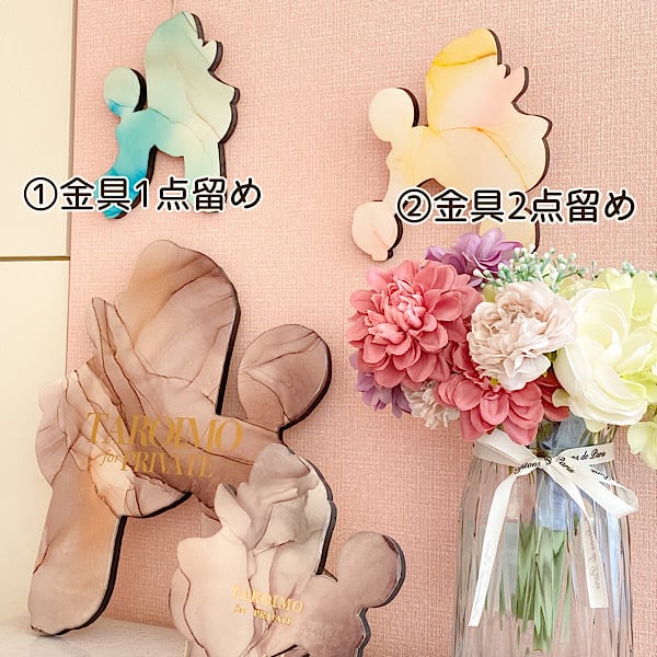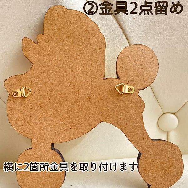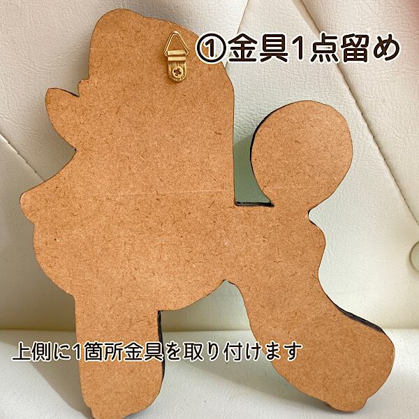 プードルアートを壁にかけて飾れるようにするための金具をオプションにておつけします。