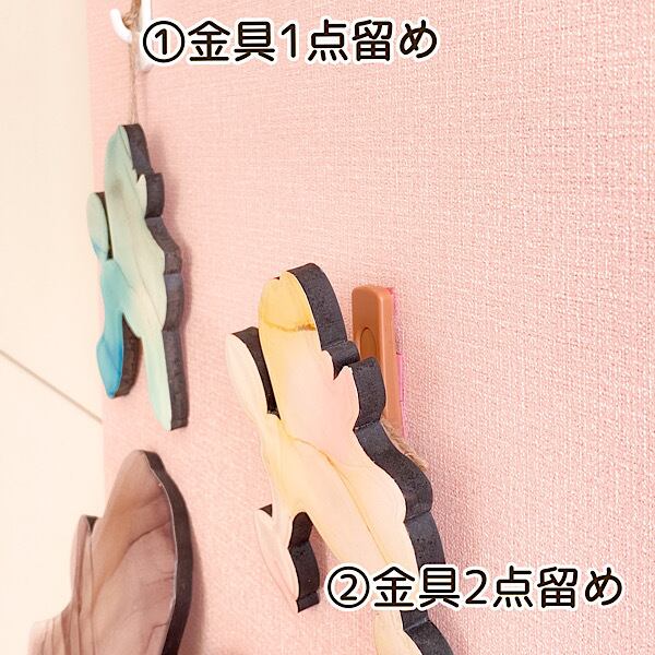 【2点留め】➡アートの後ろ2点に紐を通してその紐をフックなどにひっかけて飾るタイプのつけ方です。